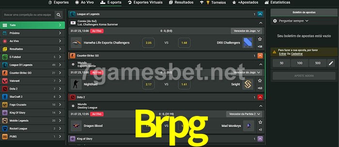O Brpg oferece uma grande seleção de opções de apostas em e-sports com probabilidades competitivas